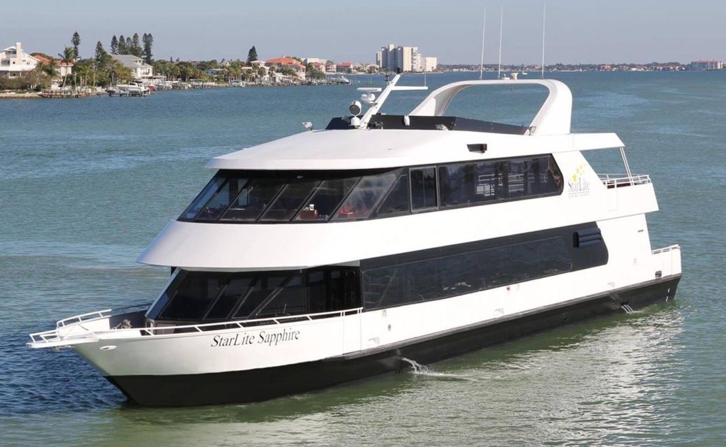 Embark on an unforgettable evening yacht cruise through the intracoastal waterways of St. Petersburg aboard the StarLite Sapphire. Relax at your reserved table on one of the inside, climate-controlled decks, or venture to the outdoor areas and enjoy the soft breezes and beautiful scenery. Dance the night away to music and entertainment provided by the live DJ. No matter what you decide, rest assured this Twilight Yacht Cruise will be one you will want to come back to over and over again. Book your spot today!